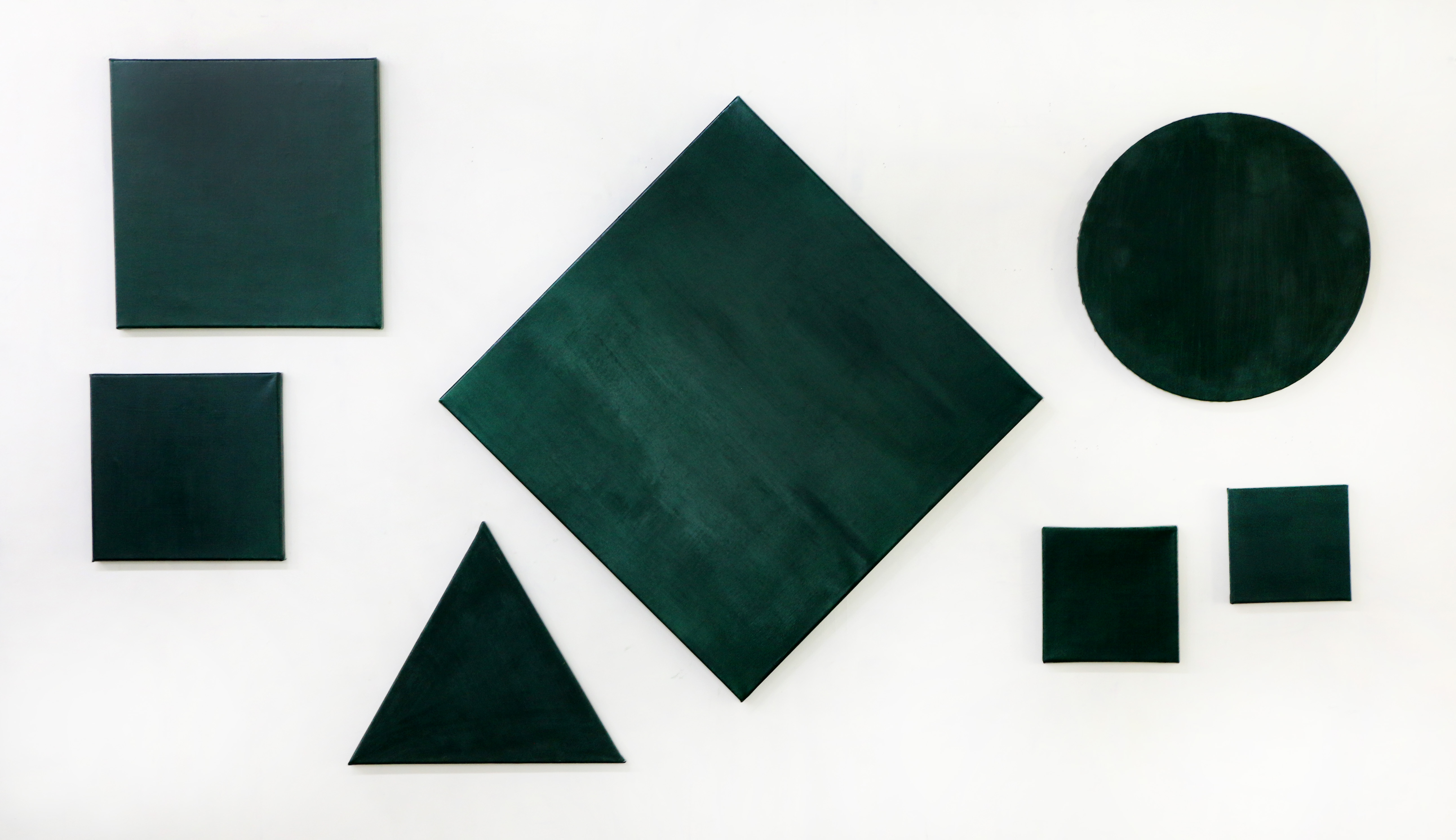 This project began as a color study of my favorite color, forest green, the color of nature and birth. I painted the color on canvases of various shapes and sizes in order to observe the change of my perception along with the changes in the canvas. However, as I placed the canvases together, it reminded me of a family tree as well as a collection of dishes. This prompted me to project clips of my favorite meals and moments I’ve shared with family and friends. I organically built upon this project step by step, carefully analyzing what sort of directions I am drawn to.